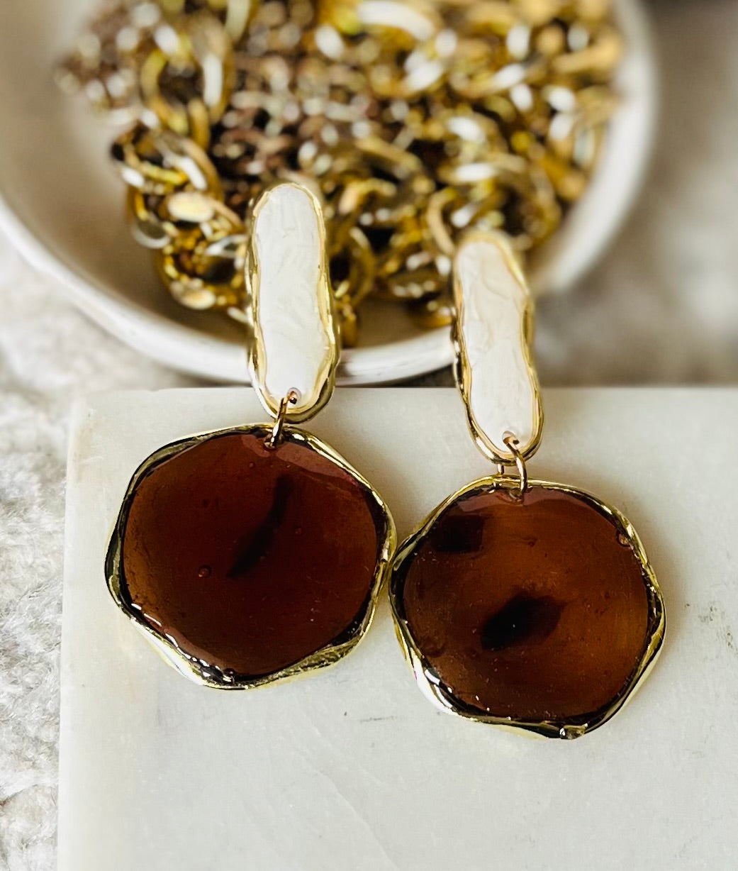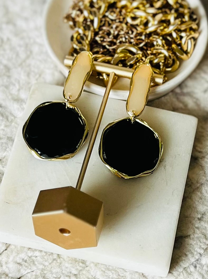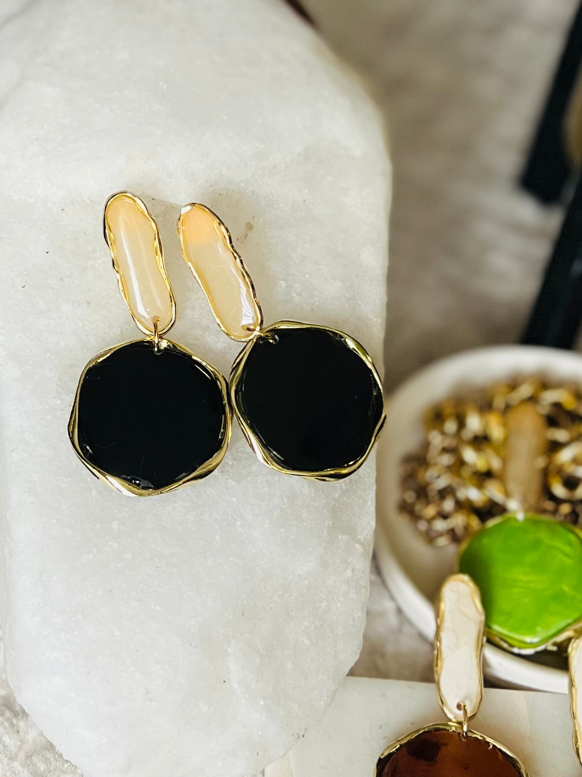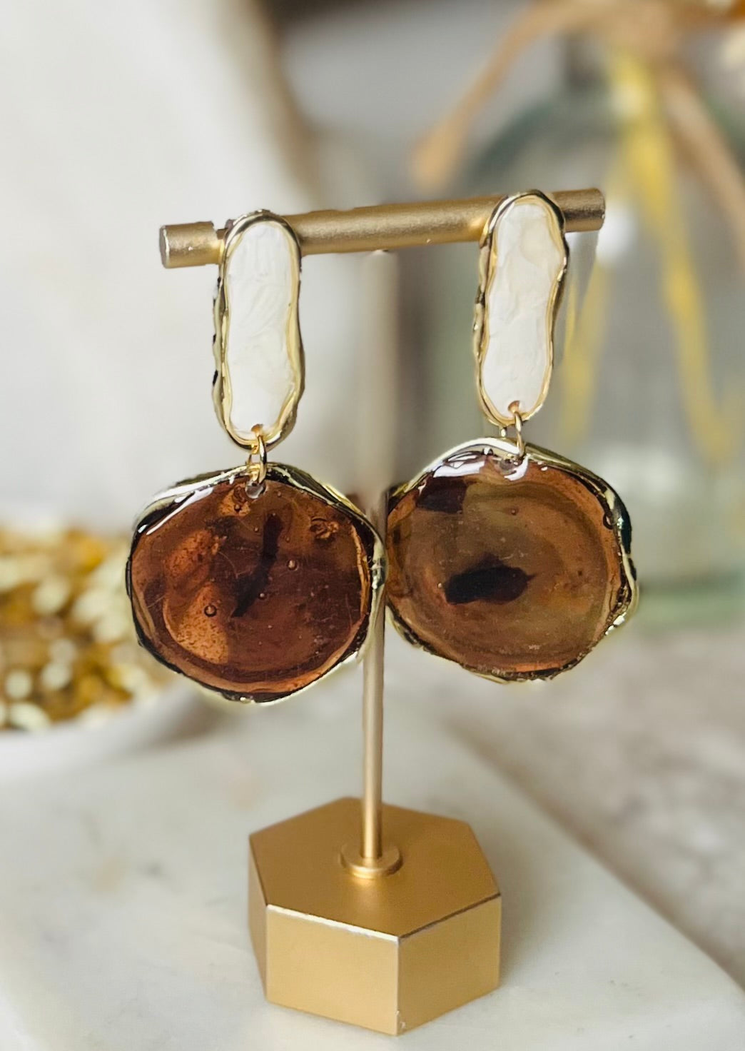 Handcrafted earrings framed in organic gold bezels and finished with a smooth resin glaze. Lightweight with an artful, modern feel—designed to elevate any look effortlessly.
