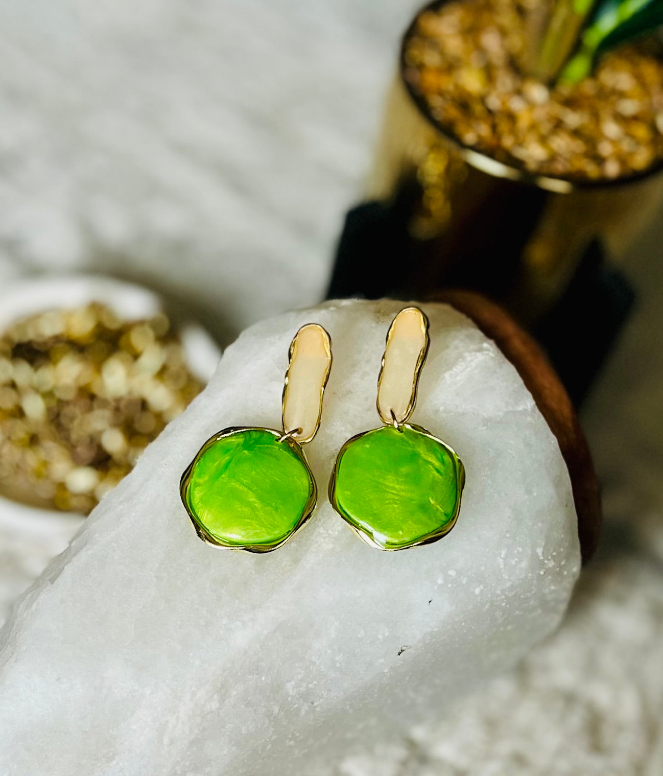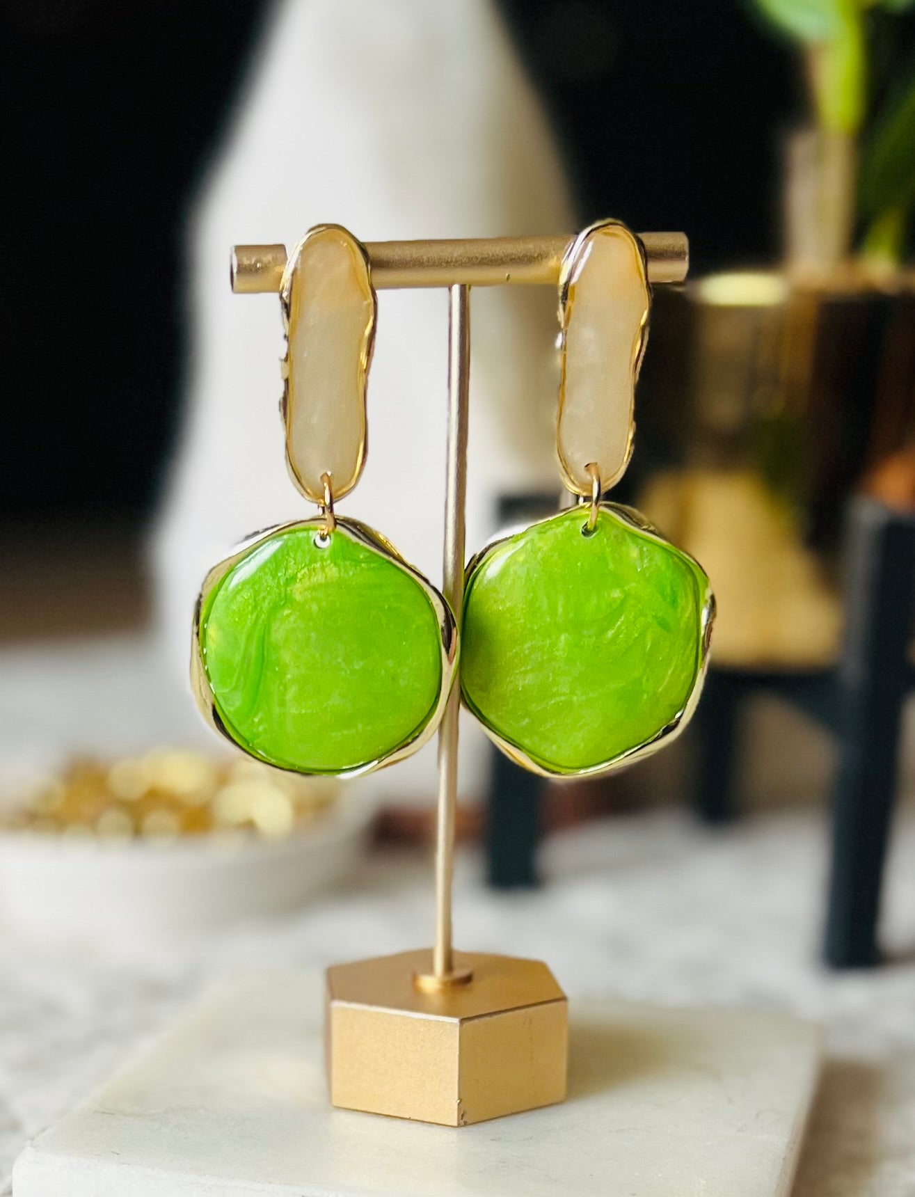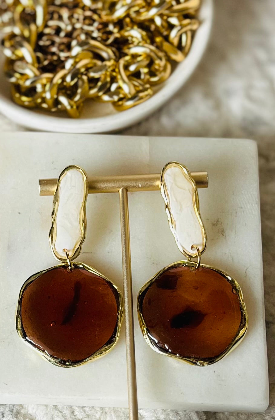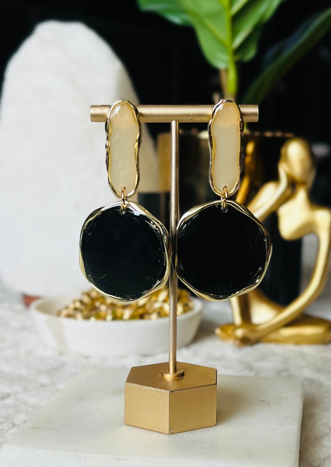 Handcrafted earrings framed in organic gold bezels and finished with a smooth resin glaze. Lightweight with an artful, modern feel—designed to elevate any look effortlessly.