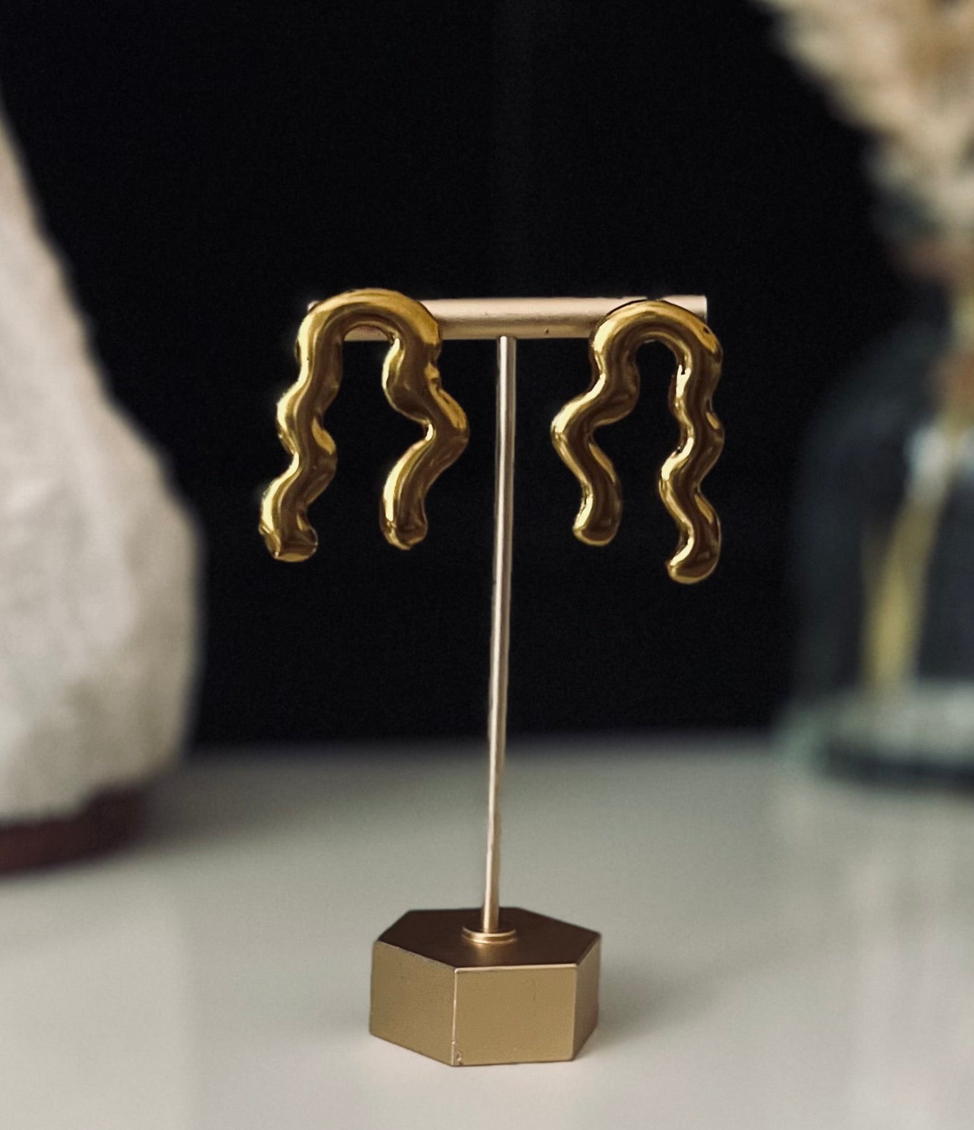 Asymmetrical and abstract, Zola is designed using polymer clay and polished with a mirrored chrome finish. Both lightweight and stylish.